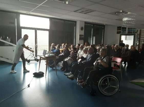 Enfin, pour ceux qui le souhaitaient, il était possible d’assister à la riche conférence du Dr Sirven, le médecin MPR du centre. Le Dr SIRVEN a présenté « la rééducation après un AVC ». Le public était nombreux et enthousiasmé par cette présentation ! Nous remercions encore chaleureusement le Dr Sirven pour la qualité de son intervention.